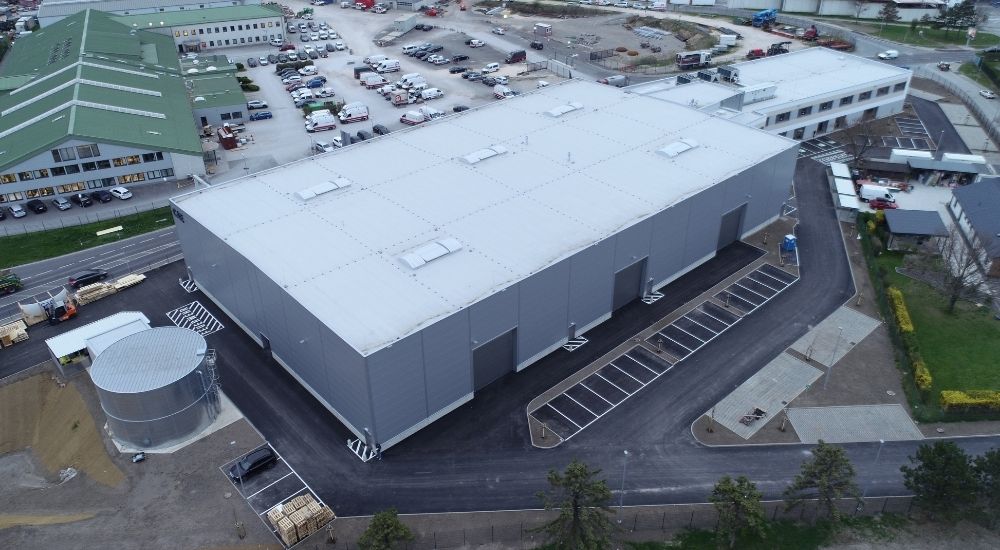 New construction of a flight simulator center consisting of a two-story office building and a hall for a total of 9 flight simulators.